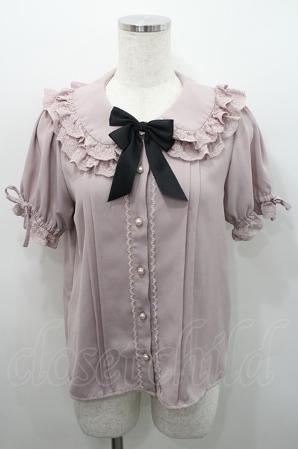 Ank Rouge / 2段レース襟半袖ブラウス ピンク I-26-02-15-043-CA-BL-SA-ZI