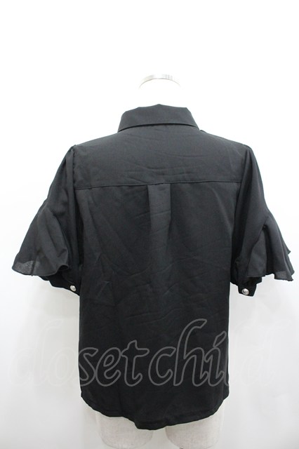 axes femme POETIQUE / タイ付ラッフルフリル半袖ブラウス 黒 I-26-02-15-002-AX-BL-HR-ZI