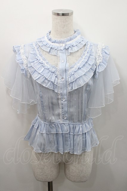 Red Maria / ハイネックシフォン半袖ブラウス サックス I-26-02-15-041-EL-BL-SA-ZI