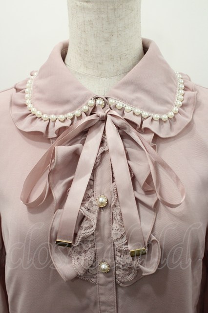 Secret Honey / パール襟フリルレース長袖ブラウス ピンク I-26-02-15-045-CA-BL-SA-ZI