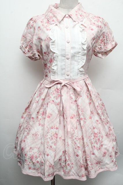 LIZ LISA / チェック額縁花柄ワンピース ピンク S-26-02-15-039-LO-OP-AS-ZS