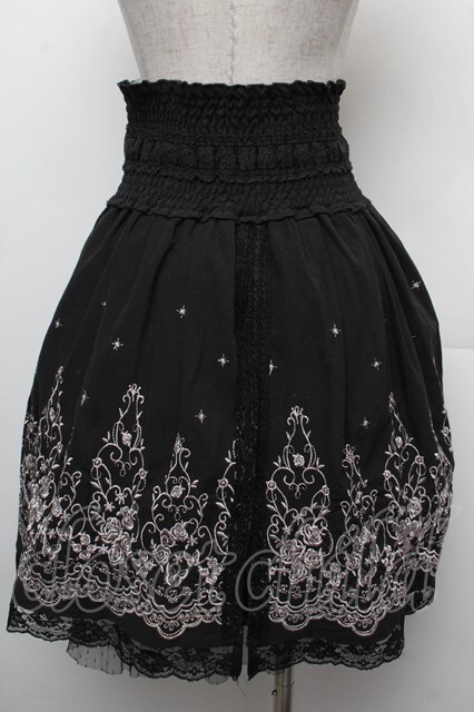 axes femme POETIQUE / ローズ刺繍スカラップスカート 黒 S-26-02-15-057-AX-SK-AS-ZS