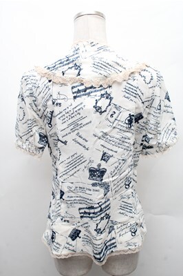 axes femme / アンティーク柄ブラウス オフx紺 S-26-02-17-013-AX-BL-AS-ZS [戻る]