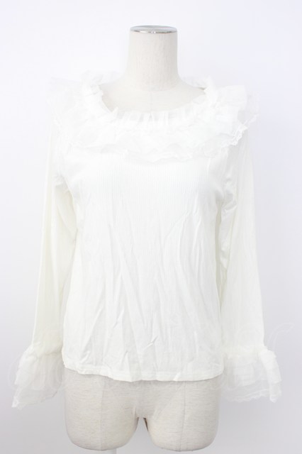axes femme / チュールフリルリブプルオーバー 白 T-26-02-20-002-AX-TO-SA-ZT