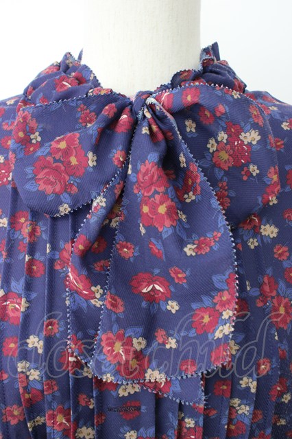 Jane Marple Dans Le Salon / フラワー総柄ブラウス 青 T-26-02-20-009-JM-SK-SA-ZT