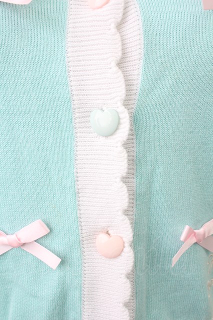 Nile Perch / リボンデザイン2カラーカーディガン サックスXアイボリー T-26-02-18-005-LO-TO-SA-ZT