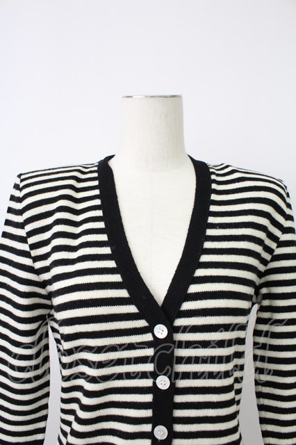 PINK HOUSE / ストライプVネックカーディガン ブラック×ホワイト T-26-02-18-009-LO-TO-SA-ZT
