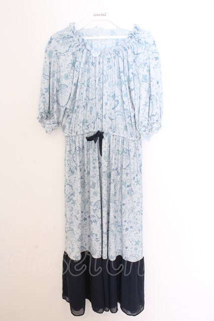 axes femme / マリンプリントリラックスワンピース F ブルー O-26-02-18-059-AX-OP-OW-OS