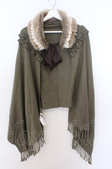 axes femme / ファーティペ付き大判ストール 60×200cm グリーン O-26-02-18-026-AX-TO-IG-OS