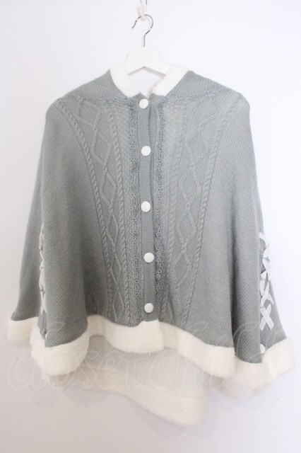 axes femme / 編み上げ裏ボアニットポンチョ グリーン O-26-02-18-060-AX-CO-OW-OS
