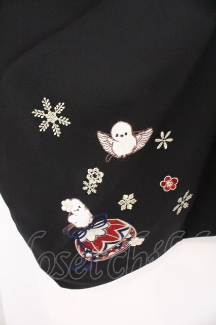 Amavel / 手まりの遊びとシマエナガ和風ブラウス F クロ O-26-02-18-056-CA-BL-OW-OS