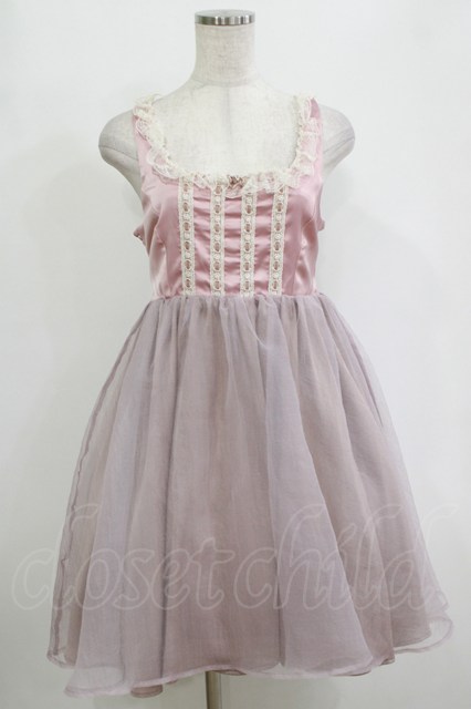 mon lily / シャーリングワンピース M ピンク H-26-02-20-030-LO-OP-NS-ZH