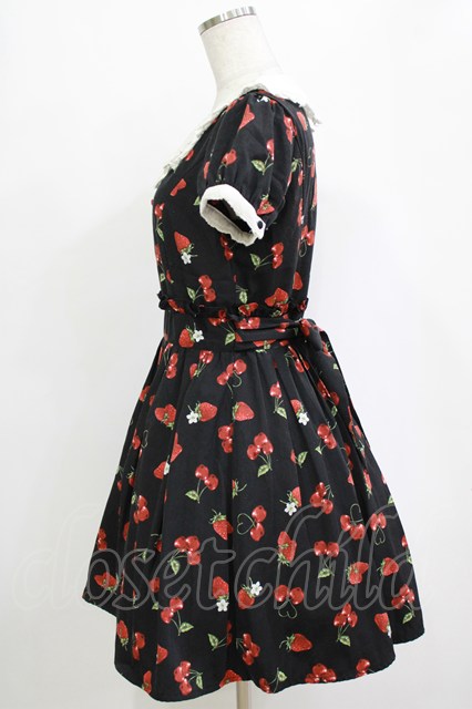 Ank Rouge / ランダムチェリーベリー衿付きワンピース M ブラック H-26-02-20-032-CA-OP-NS-ZH