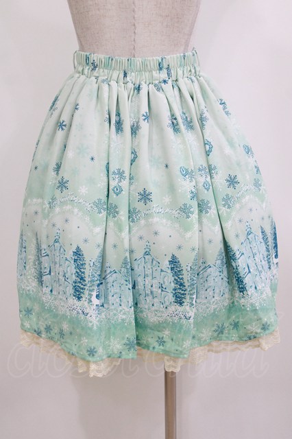 axes femme POETIQUE / 刺繍入り雪柄ミドルスカート M ミント H-26-02-20-035-AX-SK-NS-ZH