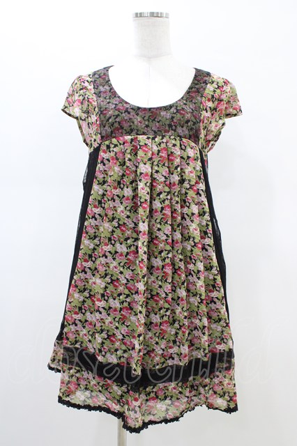 axes femme / 花柄シフォンワンピース M ブラック H-26-02-19-1050-AX-OP-NS-ZH