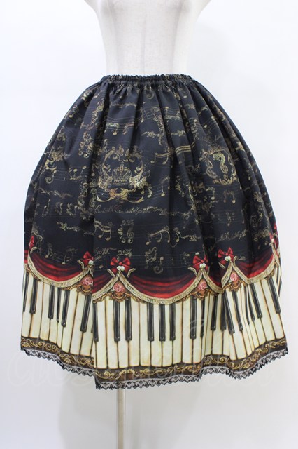 Enchantlic Enchantilly / アンティークエレガンスピアノ柄スカート Free ブラック/ワイン H-26-02-19-1044-LO-SK-NS-ZH [戻る]