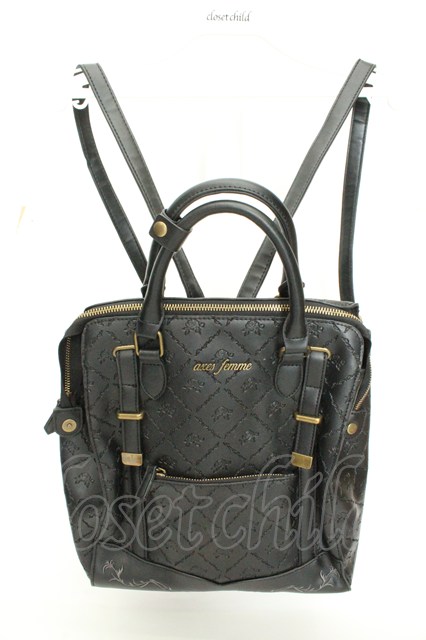 axes femme / 型押し2WAYリュック 13×27×13cm クロ O-26-02-19-047-AX-BG-IG-OS