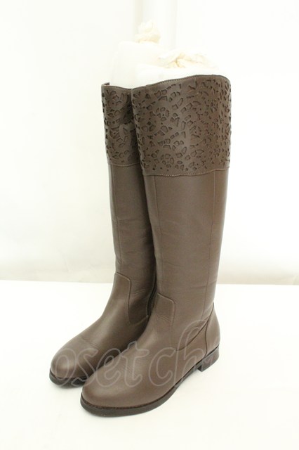 INGEBORG / カメリアくり抜きロングブーツ 22.5cm ブラウン O-26-02-19-051-LO-ZA-IG-OS [戻る]