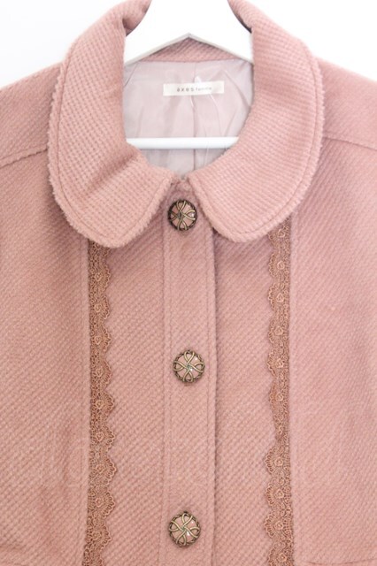 axes femme / レース配色丸襟コート ピンクベージュ O-26-02-18-1074-AX-CO-IG-OS [戻る]