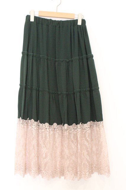 axes femme / 裾レースティアードスカート M グリーン O-26-02-18-1023-AX-SK-IG-OS