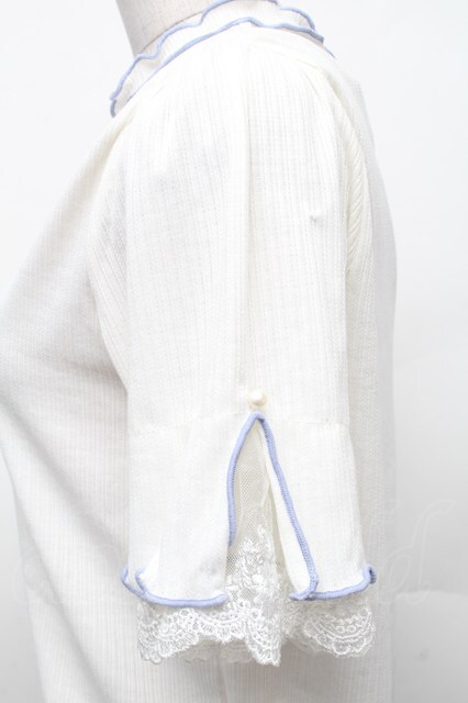 axes femme / バイカラーメロー袖レースプルオーバー 白 S-26-02-18-035-AX-TO-HR-ZS