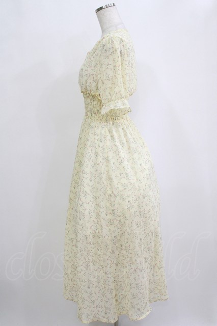 axes femme POETIQUE / 花柄シフォンワンピース M イエロー H-26-02-21-016-AX-OP-NS-ZH