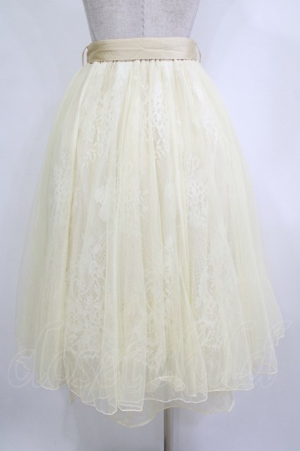 axes femme POETIQUE / リボン付レース×チュールスカート M イエロー H-26-02-21-032-AX-SK-NS-ZH