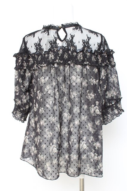 axes femme / 肩レースバラシフォンブラウス 黒 Y-26-02-19-024-AX-BL-SZ-ZY [戻る]