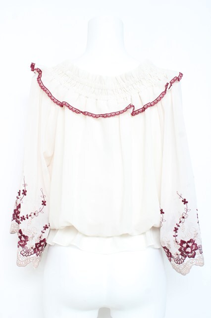 axes femme / 刺繍入りオフショルブラウス M 生成り Y-26-02-19-043-AX-TO-SZ-ZY