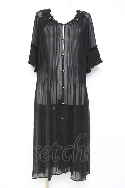 axes femme / プリーツシフォンカーディガン M 黒 Y-26-02-19-098-AX-OP-SZ-ZY