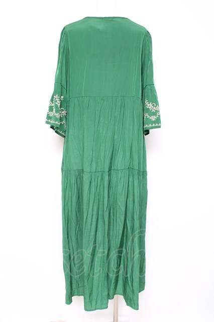 axes femme / 刺繍デザインティアードワンピース グリーン Y-26-02-19-128-AX-OP-SZ-ZY