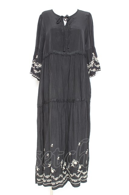 axes femme / 刺繍デザインティアードワンピース 黒 Y-26-02-19-143-AX-OP-SZ-ZY