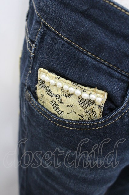 axes femme / レースパールデザインデニムパンツ 青デニム I-26-02-18-118-AX-PA-SA-ZI