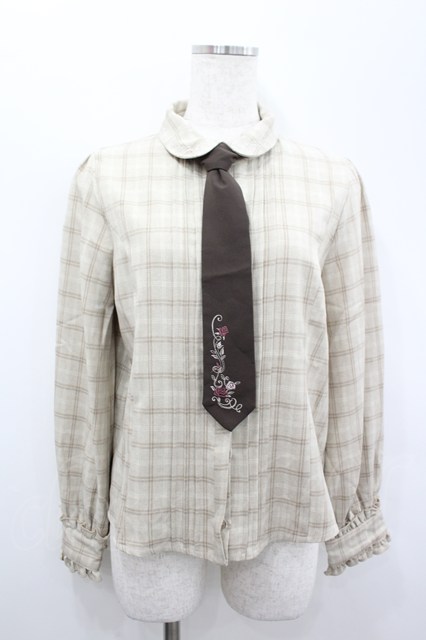 axes femme / ネクタイ付きブラウス アイボリーチェック I-26-02-18-001-AX-BL-SA-ZI