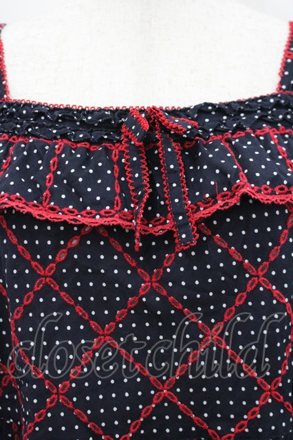 PINK HOUSE / 水玉×刺繍キャミソールブラウス ネイビー I-26-02-18-040-LO-BL-SA-ZI [戻る]
