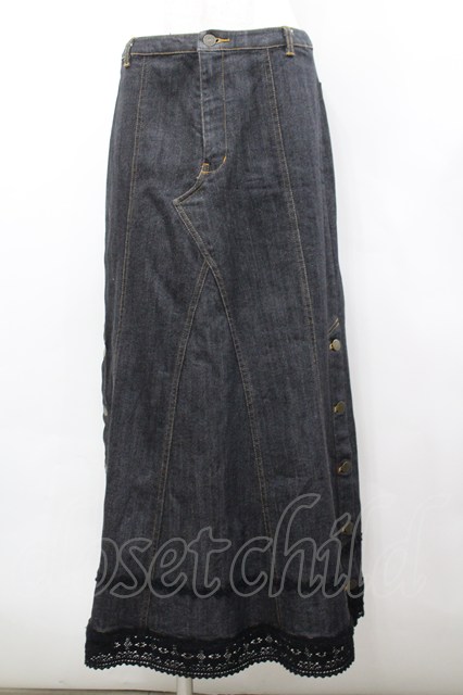 PINK HOUSE / 裾サイドボタンデニムスカート L ブラック I-26-02-18-112-LO-SK-SA-ZI