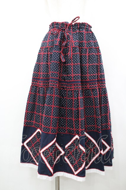 PINK HOUSE / 水玉×刺 パッチワークスカート ネイビー I-26-02-18-113-LO-SK-SA-ZI