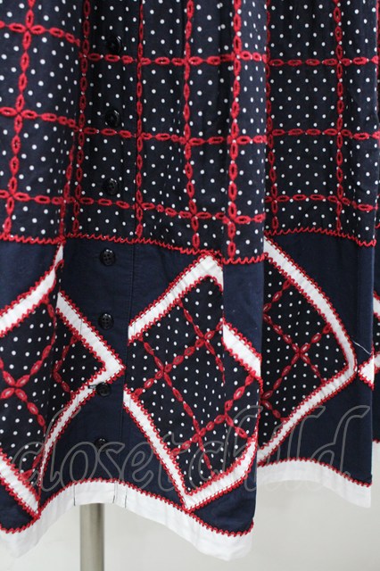 PINK HOUSE / 水玉×刺 パッチワークスカート ネイビー I-26-02-18-113-LO-SK-SA-ZI [戻る]