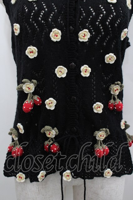 PINK HOUSE / 苺ニットモチーフ付き前開きニットベスト ブラック I-26-02-18-013-LO-TO-SA-ZI [戻る]