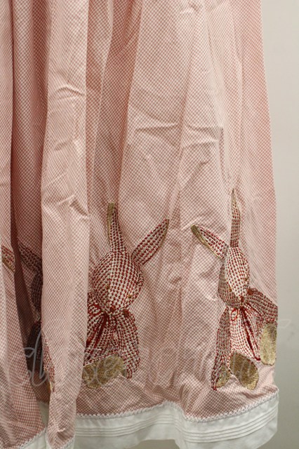 WONDERFUL WORLD / サッシュリボン付きうさぎ刺繍ギンガムチェックスカート ピンク I-26-02-18-080-LO-SK-SA-ZI [戻る]