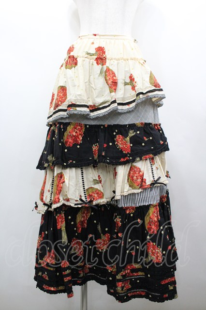 WONDERFUL WORLD / 籠苺pt色違い段々フリルスカート ブラック×ホワイト I-26-02-18-078-LO-SK-SA-ZI
