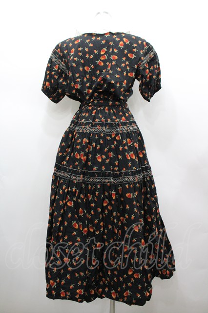 WONDERFUL WORLD / 苺pt&刺繍半袖ワンピース ブラック I-26-02-18-071-LO-OP-SA-ZI
