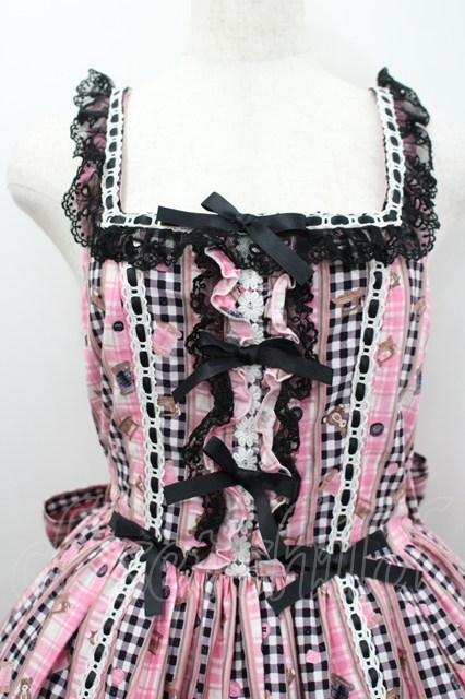 metamorphose / Happy Sewing Time フリルジャンパースカート 1 ピンク黒 I-26-02-18-050-ME-OP-SA-ZI [戻る]