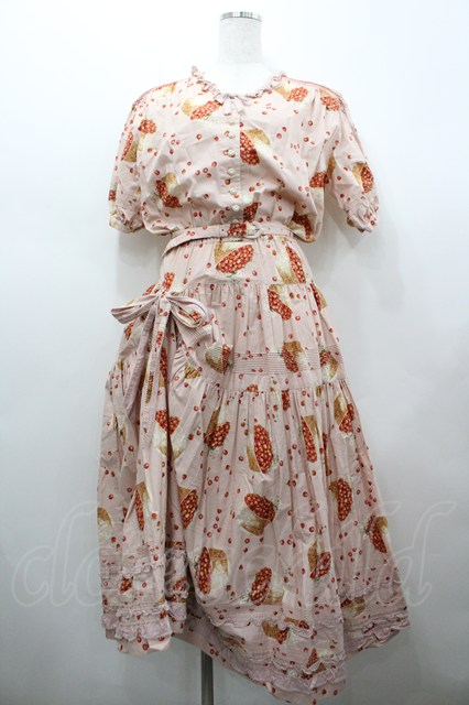 KANEKO ISAO / 籠入り苺pt半袖ワンピース ピンク I-26-02-18-069-EL-OP-SA-ZI