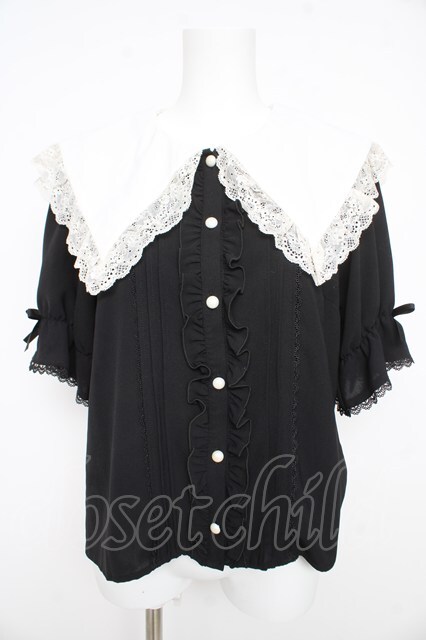 Dear My Love / 刺繍レースフリルセーラーブラウス M 黒 Y-26-02-21-050-EL-BL-SZ-ZY [戻る]