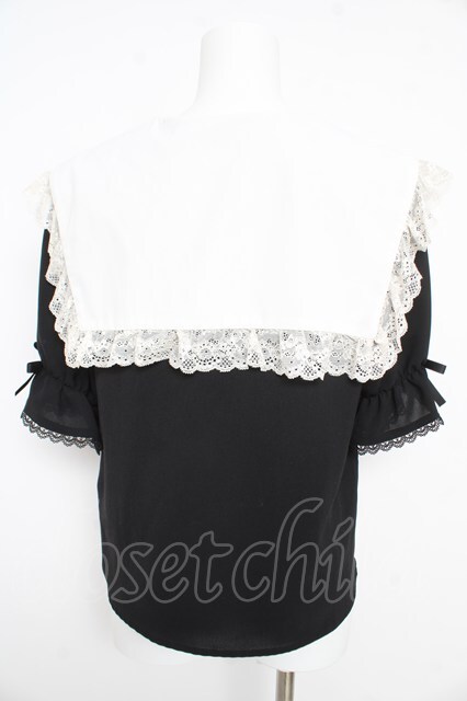 Dear My Love / 刺繍レースフリルセーラーブラウス M 黒 Y-26-02-21-050-EL-BL-SZ-ZY