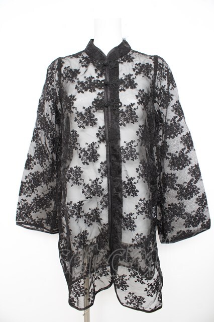 axes femme kawaii / シースルーチャイナブラウス M 黒 Y-26-02-21-068-AX-BL-SZ-ZY