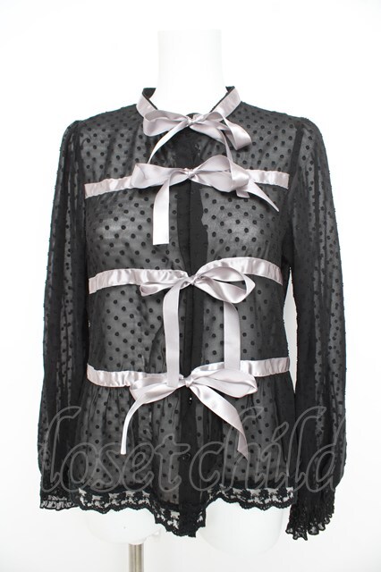 axes femme kawaii / ドットリボンブラウス M 黒 Y-26-02-21-069-AX-BL-SZ-ZY
