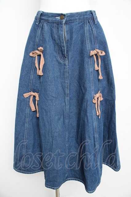 merry jenny / ダブルリボンデニムスカート F ブルー Y-26-02-21-180-LO-SK-SZ-ZY