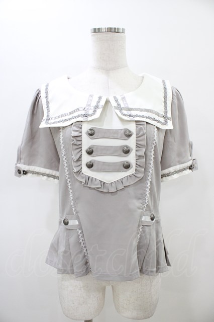 Ozz oneste / ナポレオンデザインセーラー襟半袖ブラウス グレー H-26-02-20-1032-OO-BL-KB-ZH